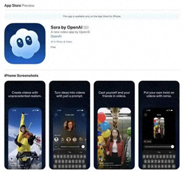 美国时间9月30日,OpenAI发布了Sora 2模型,能够生成 “高度逼真” 的视频场景和音效,该模型被视为自2024年2月OpenAI发布首个 Sora 模型以来的重要升级。与此同时,搭载Sora2模型的应用Sora正式在苹果App Store上线,该应用目前仅限于美国和加拿大地区的iOS用户使用。上线仅四天内,Sora便登顶苹果 App Store 的免费应用榜首,超越了谷歌的Gemini和OpenAI的另一款应用ChatGPT。